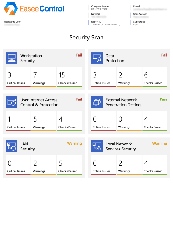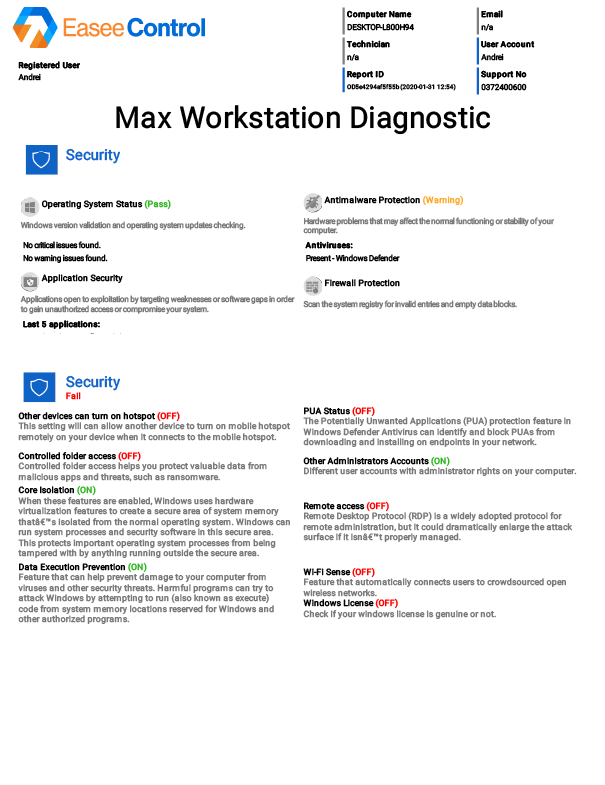 Full analysis of your computer security status, which includes antivirus protection, firewall, application security, data protection, login security and internet communication protection.